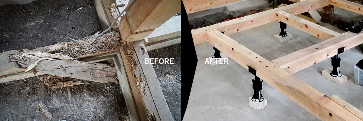 シロアリや腐食によって、耐力がない柱や梁の修繕です。修繕をしてもシロアリや水濡れなどによる劣化が進行する可能性がある場合は、駆除や湿気対策によって根本的な原因を解決する必要があります。