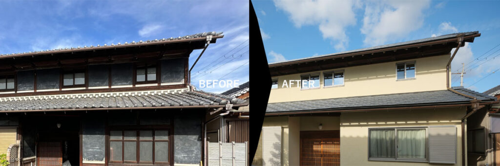 古民家において耐震性能が低い原因のひとつとして、重い瓦屋根があります。土の上に瓦屋根を葺いているのがほとんどのため、大きな荷重がかかっています。荷重を避けるために、土を下ろして合板に張替、瓦を葺く、金属屋根にするなど、いくつかの方法があります。