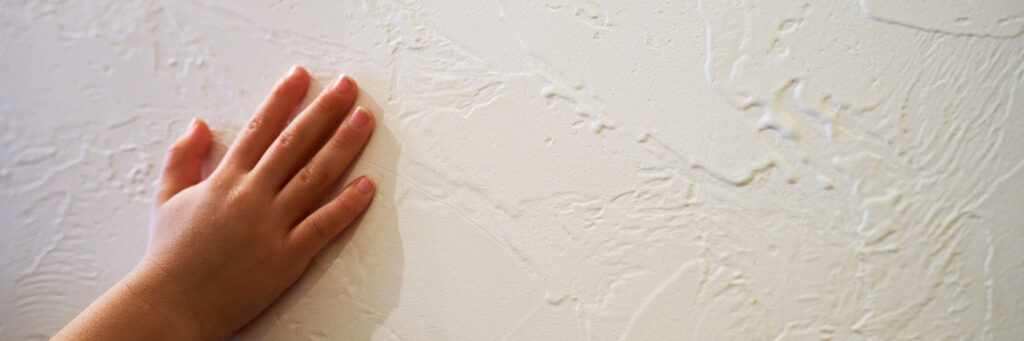 当社で室内仕上げとしてよく使用しているのが、クロスに替わって火山灰をベースとした塗り壁素材です。吸放湿性が高い素材で、呼吸のように湿気を吸い、湿気を吐き出す役割を持っています。夏の湿気、冬の乾燥を防ぐとともに、空気中の臭いを吸い分解してくれる効果も持っています。